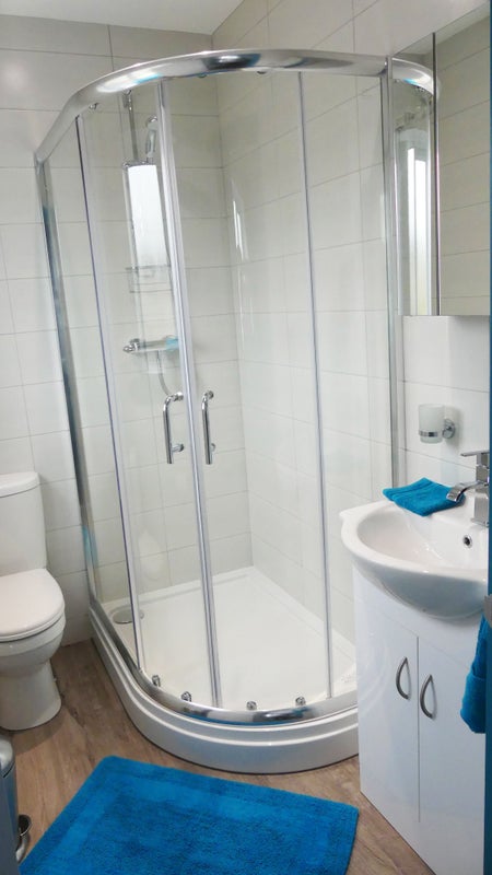 The kitchen is fully fitted with everything you could need. There is a communal area with dining room table and chairs and a sofa with a 50 inch TV.